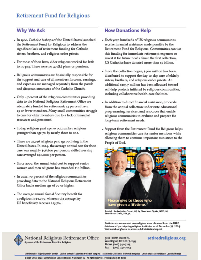 National Religious Retirement Office Announces 2025 Retirement Fund for Religious Collection
