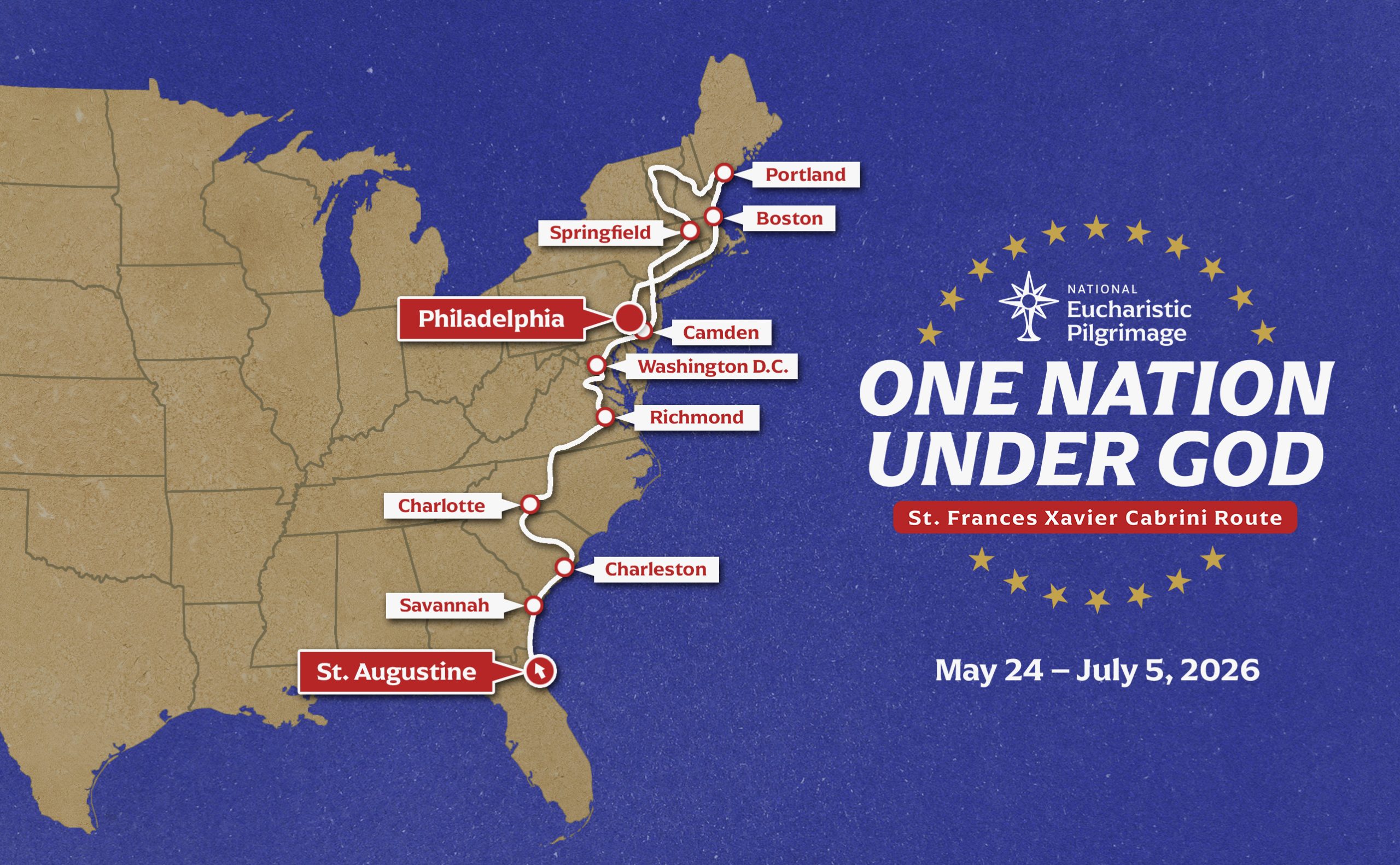 The Catholic Diocese of Wilmington is proud to participate in the upcoming 2026 National Eucharistic Pilgrimage which announced its theme recently. The pilgrimage, under the theme “One Nation Under God” will honor St. Frances Xavier Cabrini, the first American citizen to be canonized a saint as dioceses along the Eastern seaboard of the United States come together from Memorial Day through July 5, 2026 to encounter Jesus in the Eucharist.